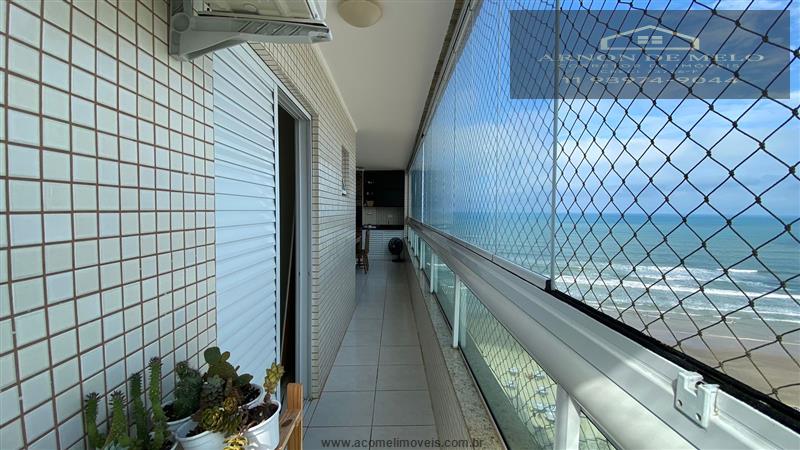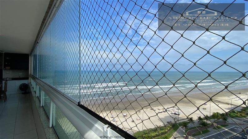 Varanda Gourmet: Espaço envidraçado e com tela de proteção, oferecendo vista lateral para o mar e incidência do sol da tarde.