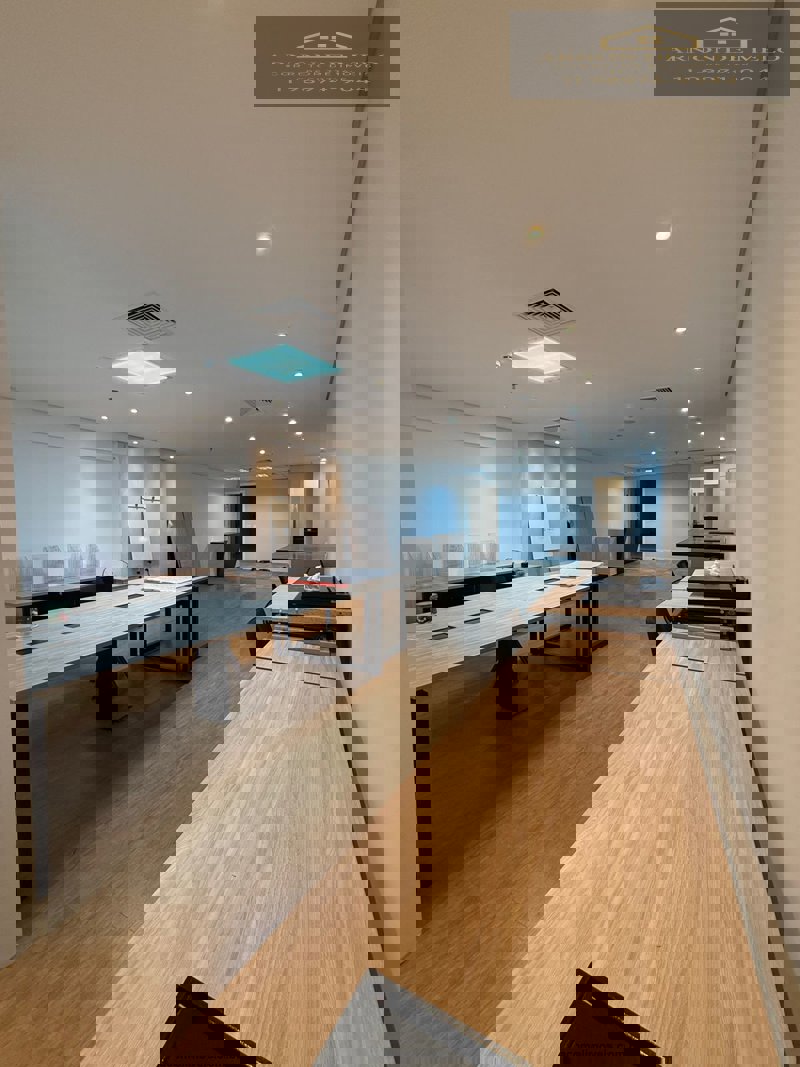 Infraestrutura completa: piso elevado, forro, luminárias e ar-condicionado